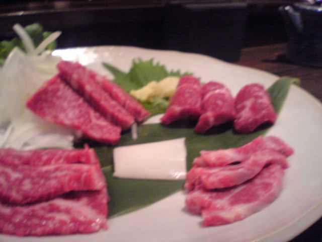太刀魚の刺身と穴子のタタキと酒盗、エイのひれで